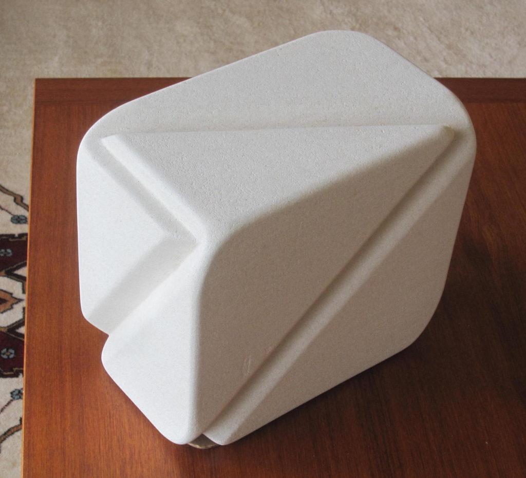 This carving employed a diagonal groove not intersecting itself and crossing every face of the cube. Again its “4th dimension” provides different positioning and light effects of the grooves.