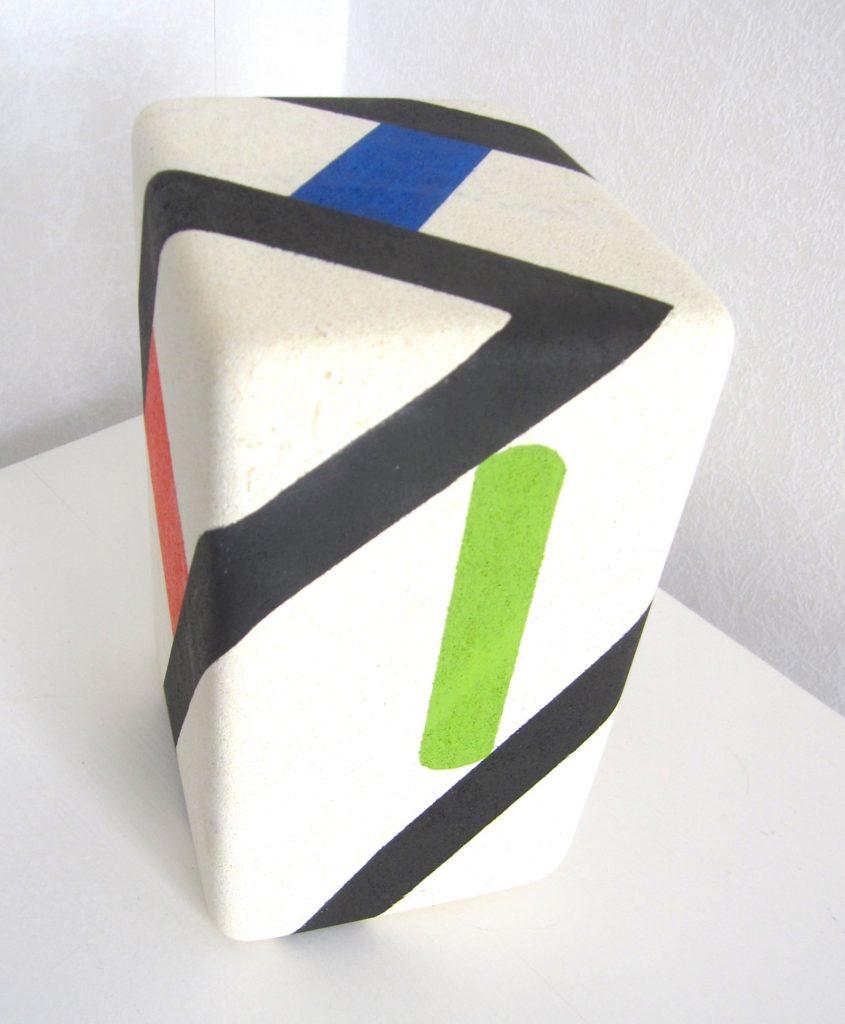 Diagonal black continuous non-overlapping line with colored geometric shapes on each surface. Wt: 5.1 Kg, Length 8 1/8″, Width 5 3/8″, Depth 4 1/2″