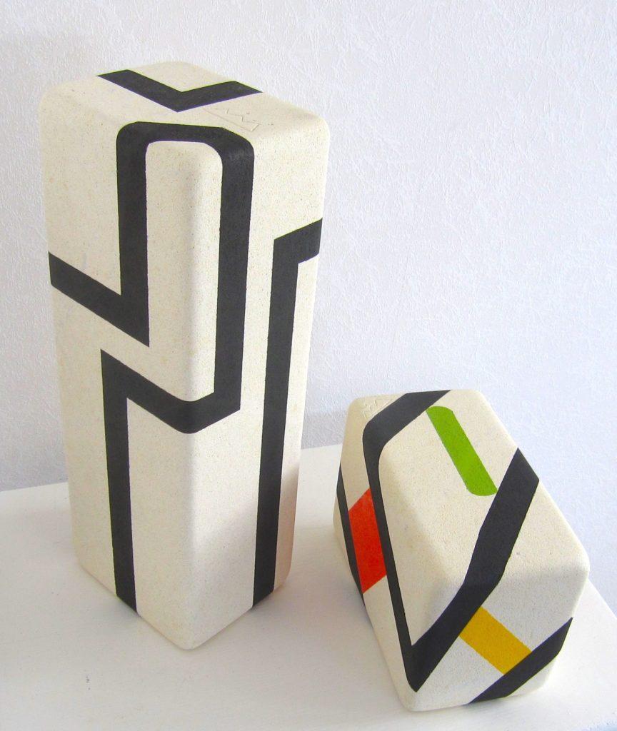 This piece was prepared like #20 with 400 grit sandpaper, blocked with blue 3-M painter’s tape and painted. Any under-seepage was removed with a sharp instrument. This was part of the same block as #20, size was reduced so each piece could safely be displayed in multiple positions. Bottom photo includes both sculpture #20 and #21. David and Kathy P., Melbourne, Australia
